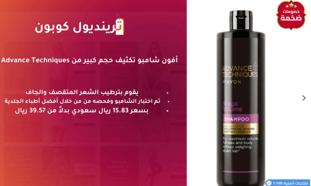 يمكنك الحصول على أفضل منتجات العناية بالشعر ترينديول بأقل الأسعار التنافسية التي لا يوجد مثيل لها من خلال استخدام كوبونات مستحضرات الشعر للحصول على عروض وتخفيضات مستحضرات العناية بشكل كبير والاستفادة من هذه الخصومات الرائعة، حيث أن المتجر يوفر منتجات ذو جودة عالية في العناية بالشعر،